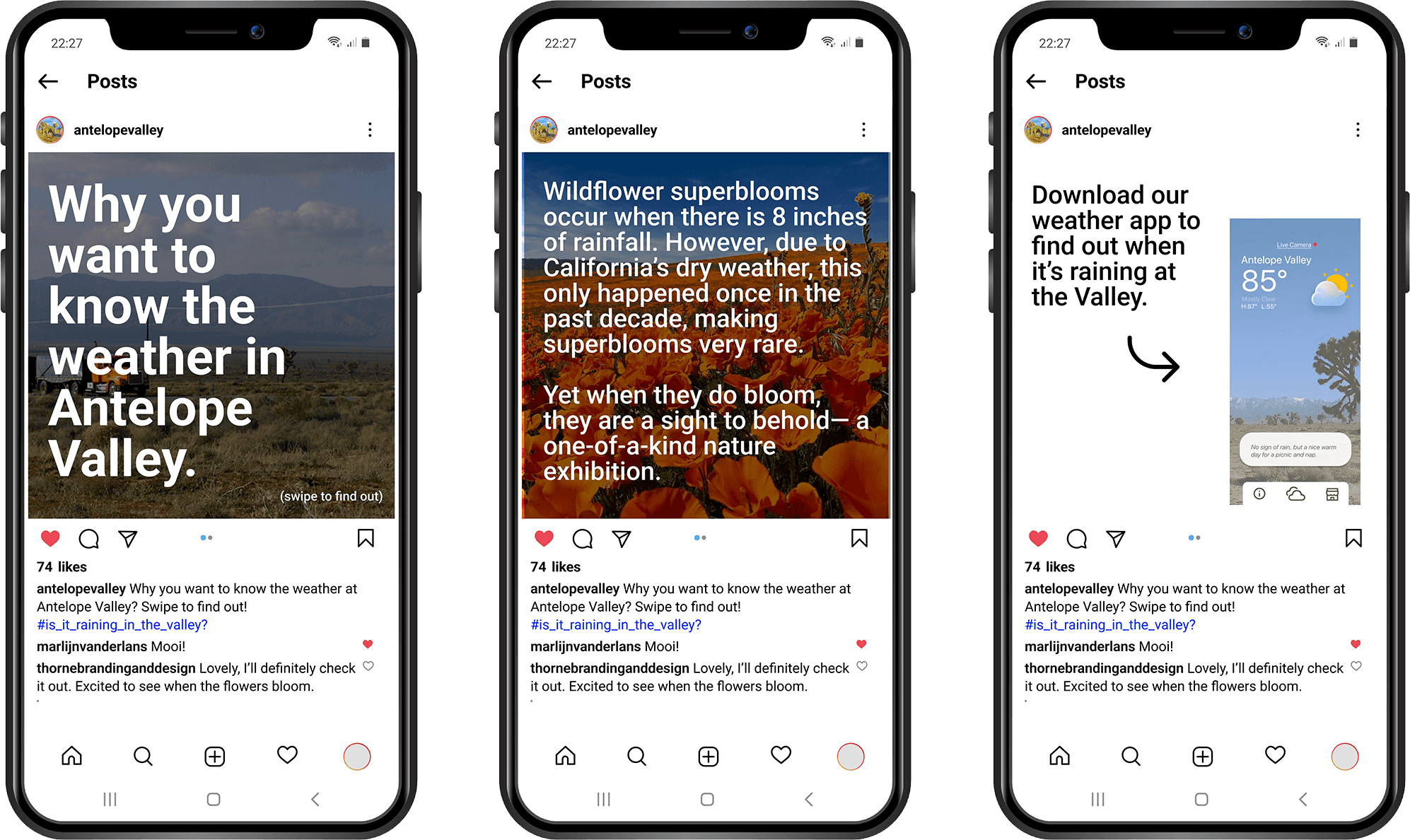 Since the event of a super bloom is so sporadic, what if there was an integration on the IOS/Google weather app for Antelope Valley. People can check a live view of the fields, and whenever a super bloom occurs, the app will notify the user.